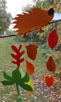 Die Schüler haben aus Natur-, und Bastelmaterial ein herbstliches Igelmobilee erstellt.