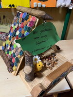 Auch die Schüler der 3b waren in Sachen Schulgarten-Gestaltung kreativ: Regenwürmer aus Ton wurden geknetet und geformt, Pflanzschilder gestaltet, Holzhäuser geschliffen und bemalt, Dekorationslibellen bunt verziert und das Schulgartenbuch verschönert.