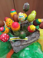 Frau Wellschmied und Frau Berlis haben die "Besonderen Pausen" genutzt und mit den Kindern bunte Blumen für die Aula und erste Ostereier gebastelt.