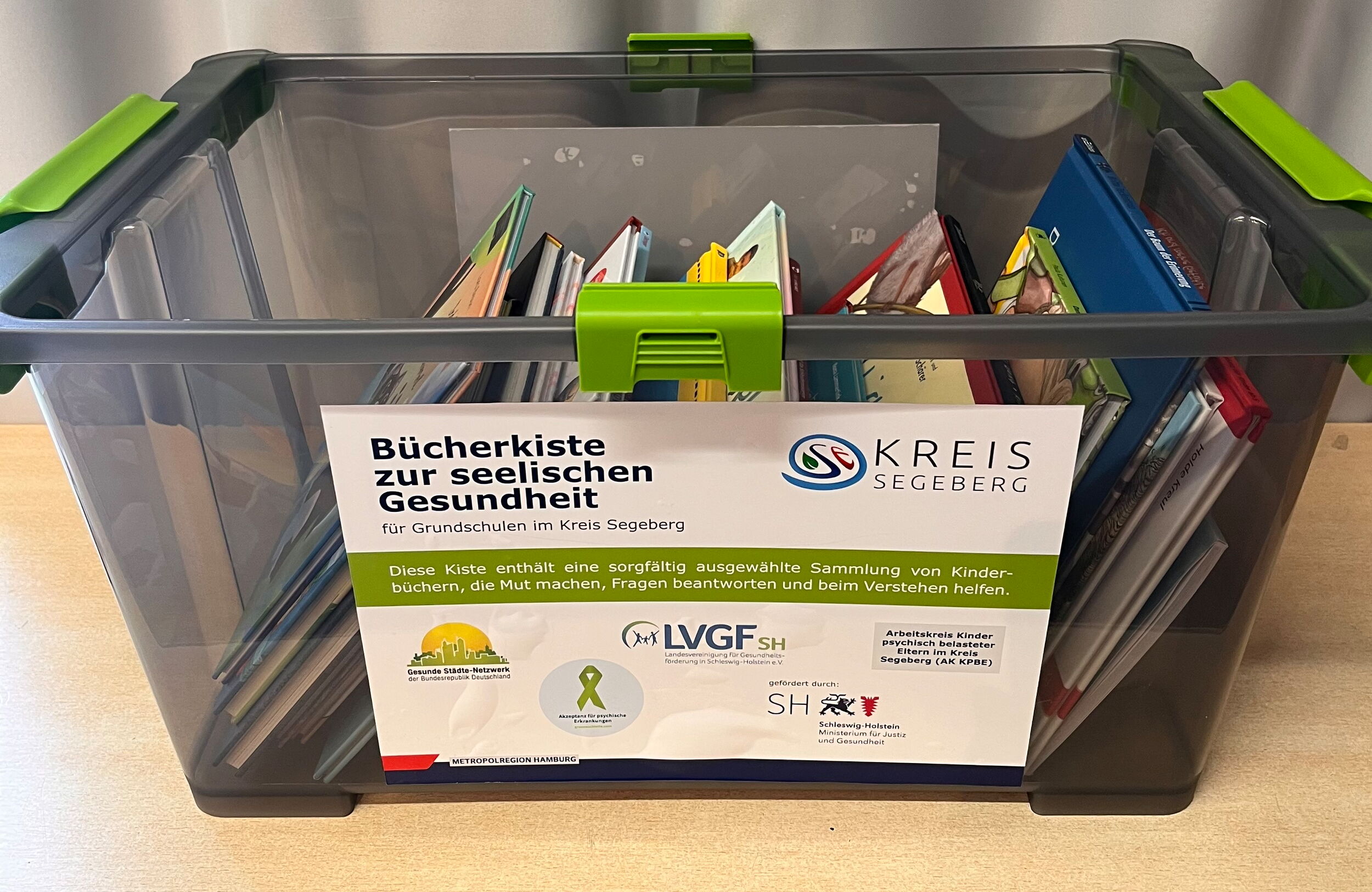 Der Grundschule Lentföhrden steht ab sofort eine "Bücherkiste zur seelischen Gesundheit für Grundschulen des Kreises Segeberg" zur Verfügung. Mit dieser Bücherkiste haben wir Material, um mit Kindern auf natürliche und kindgerechte Weise über seelische Gesundheit zu sprechen. Diese Bücher wurden von einem Expertenteam des Kreises Segeberg und des Landes Schleswig-Holstein sorgfältig ausgewählt. Die Auswahl deckt zentrale Themen seelischer Gesundheit ab und ist altersgerecht für die Grundschule angepasst. Die Schülerinnen und Schüler beider Standorte werden von diesen Büchern profitieren.