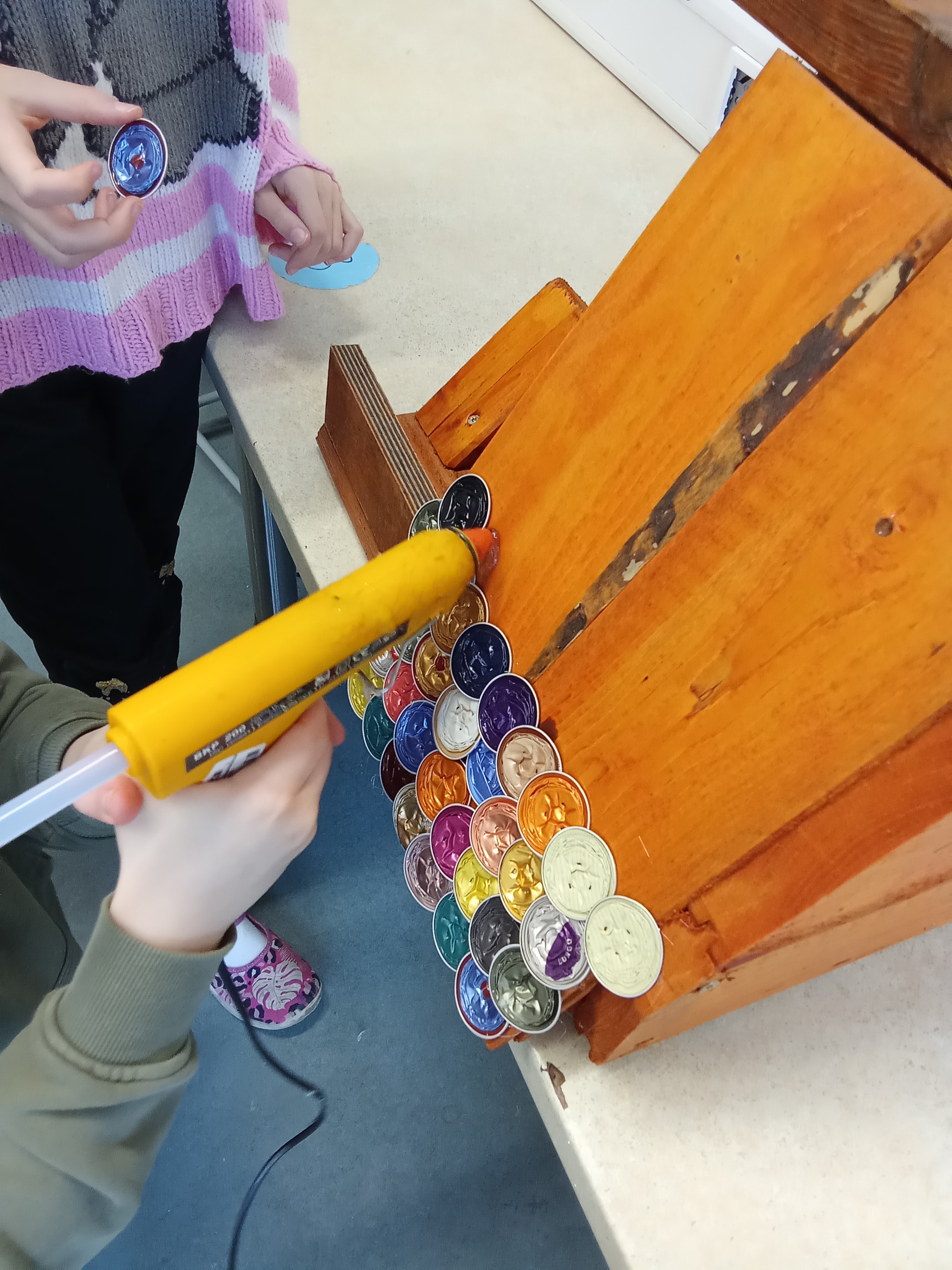 Die 3/4b gestaltet ihr neues Klassen-Vogelhäuschen