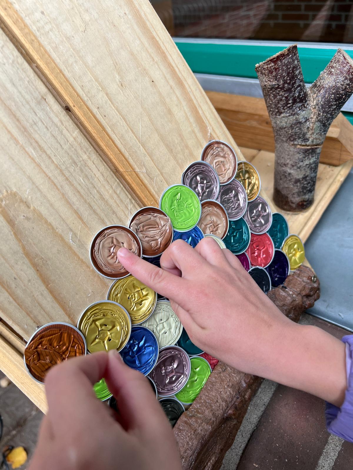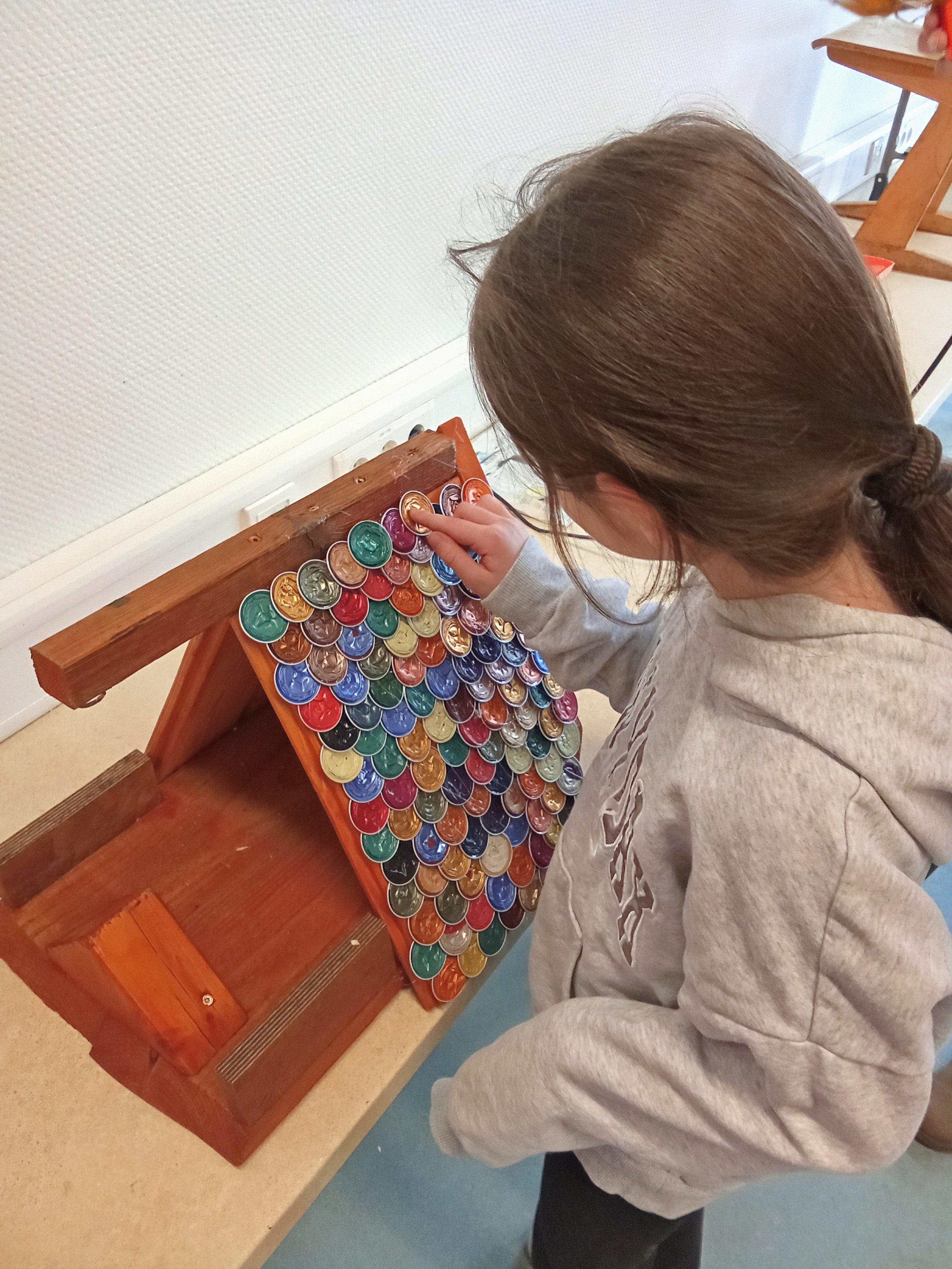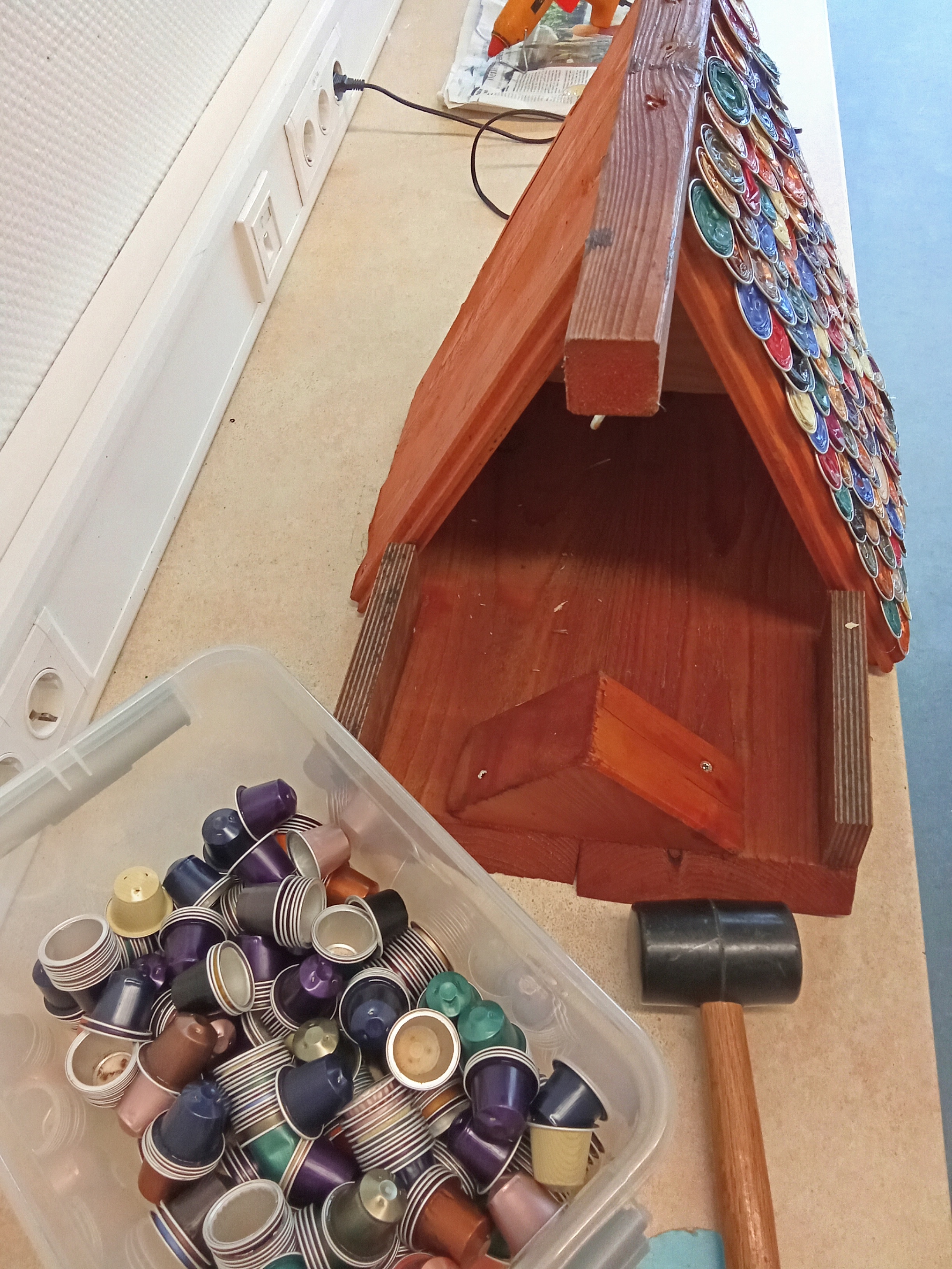 Wer will fleißige Handwerker sehen? In Nützen konnten die Kinder der EB heute im Oktober das Vogelhaus-Dach verzieren, demnächst wird das schöne Stück im Schulgarten von Hausmeister Radke aufgehängt und die Fütterung (und Beobachtung!) der Vögel kann starten.