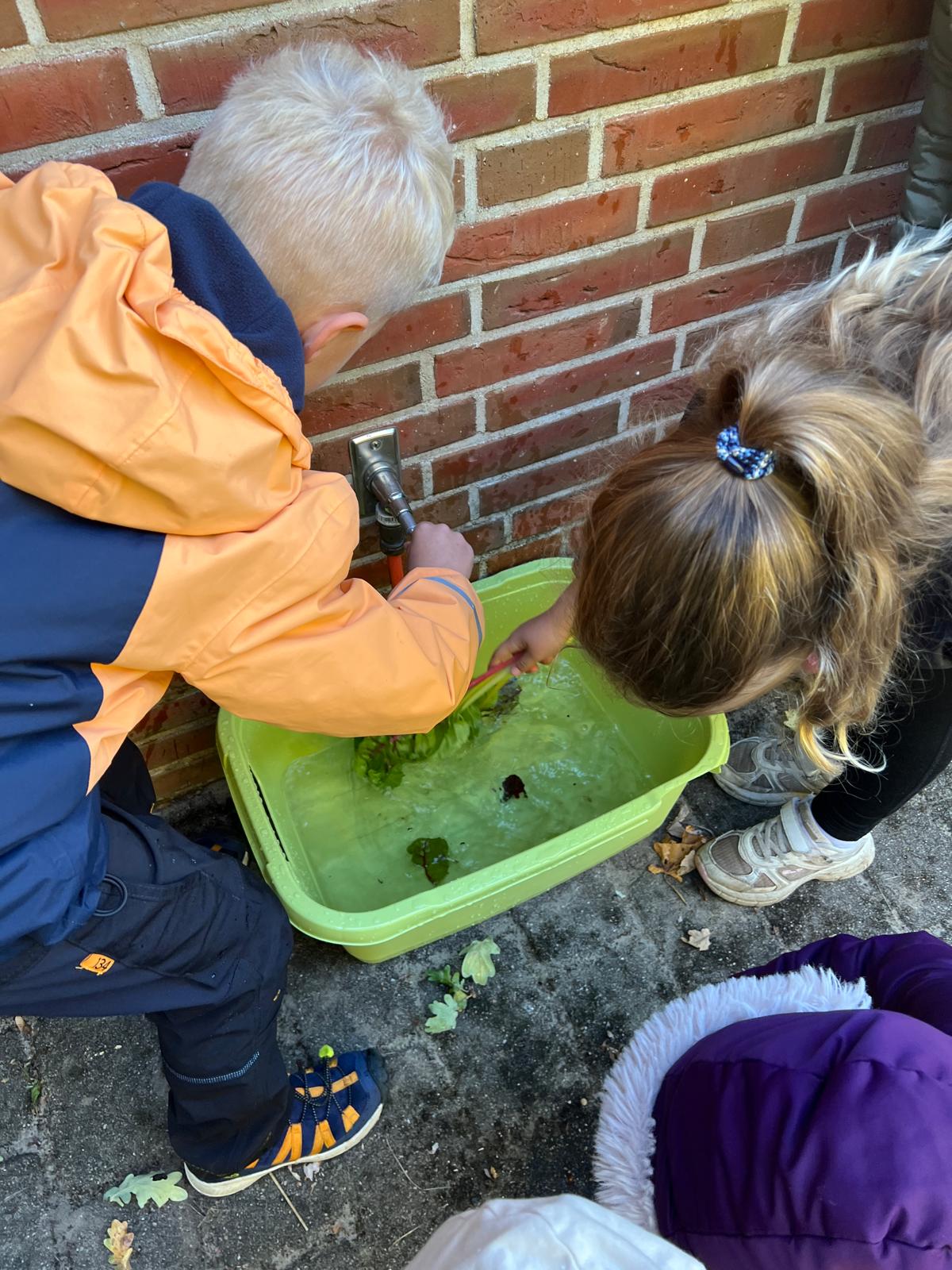 Die Kinder werden in Kleingruppen wöchentlich wechselnd eingeteilt, um montags und dienstags jeweils in der 2. Schulpause tatkräftig unter Anleitung von Katja Dalldorf den Schulgarten aktiv mit zu gestalten. Kinder sind zuerst Ideengeber, was wie und wo angepflanzt wird. Selbständigkeit ist gefragt im Garten!