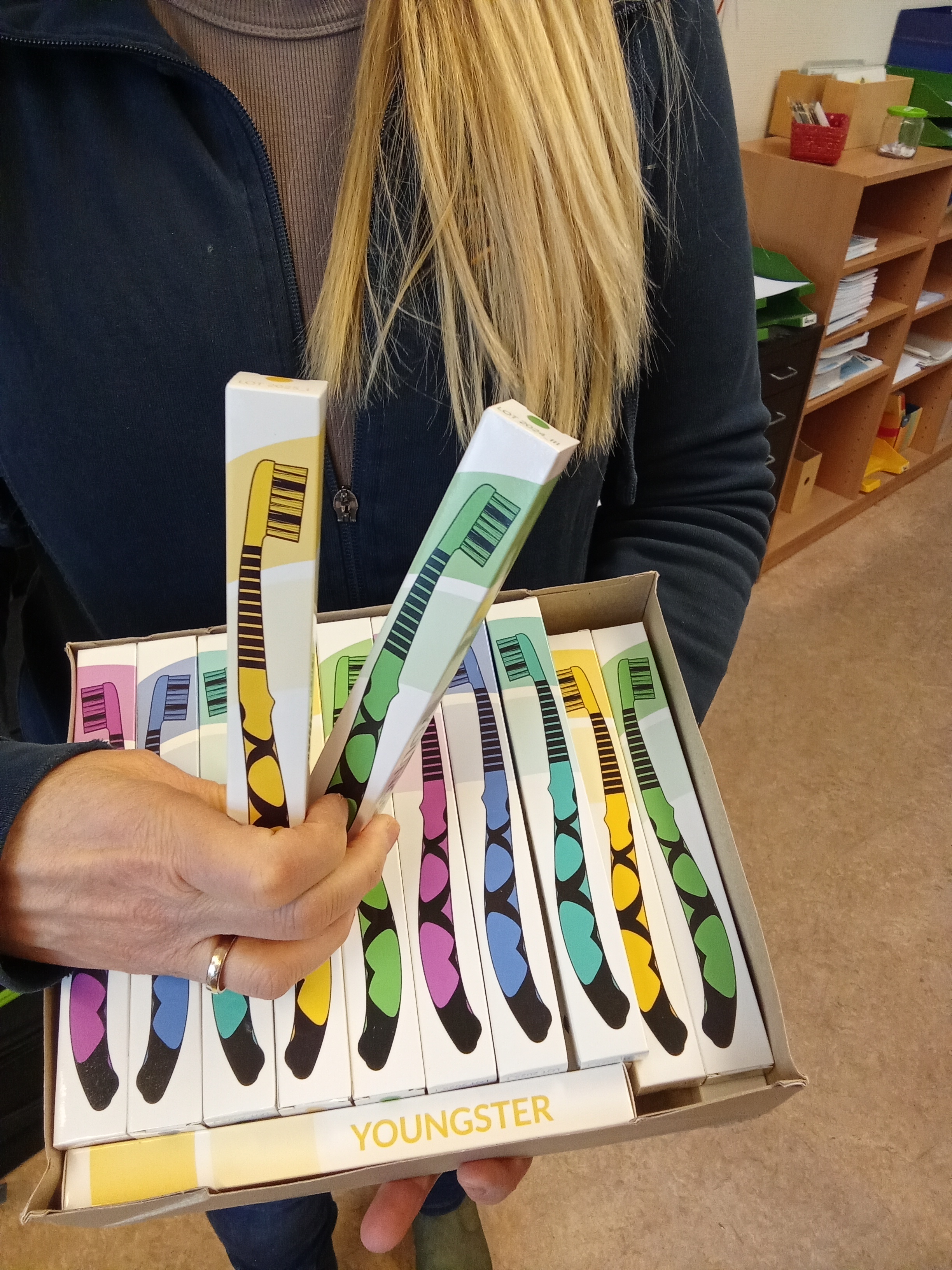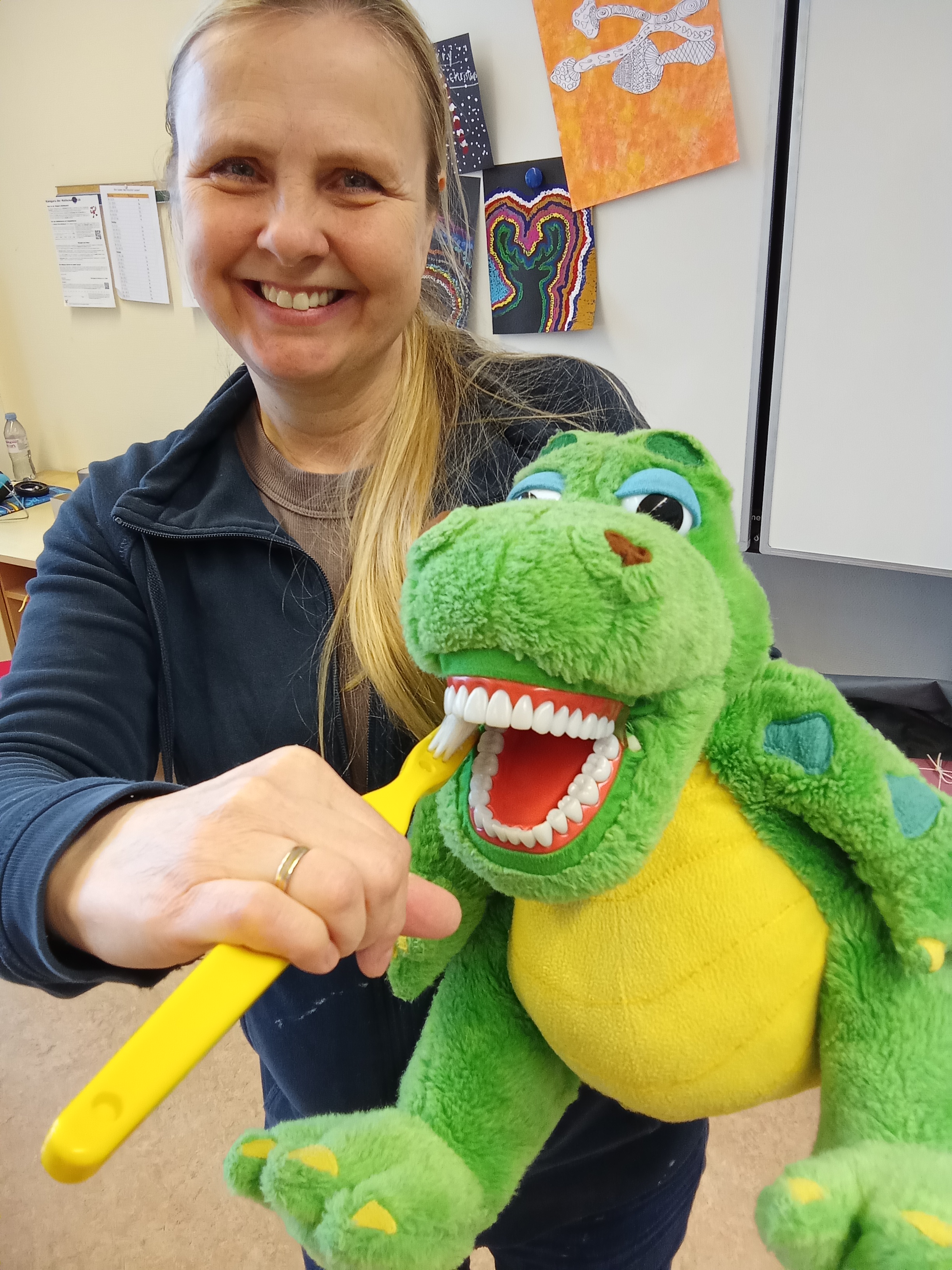 Silvia Schäfer, "Zahnputzfee" für den Kreis Segeberg, war zu Gast in all unseren Klassen. Kroko Muck war dabei und zeigte, wie man korrekt Zähne putzt. Für alle Schüler gab es zudem eine neue Zahnbürste. Finanziert wird der Einsatz der Prophylaxehelferin von der Arbeitsgemeinschaft zur Förderung der Jugendzahnpflege im Kreis Segeberg. Kitas, Grundschulen und weiterführende Schulen bis zur 7. Klasse beteiligen sich.