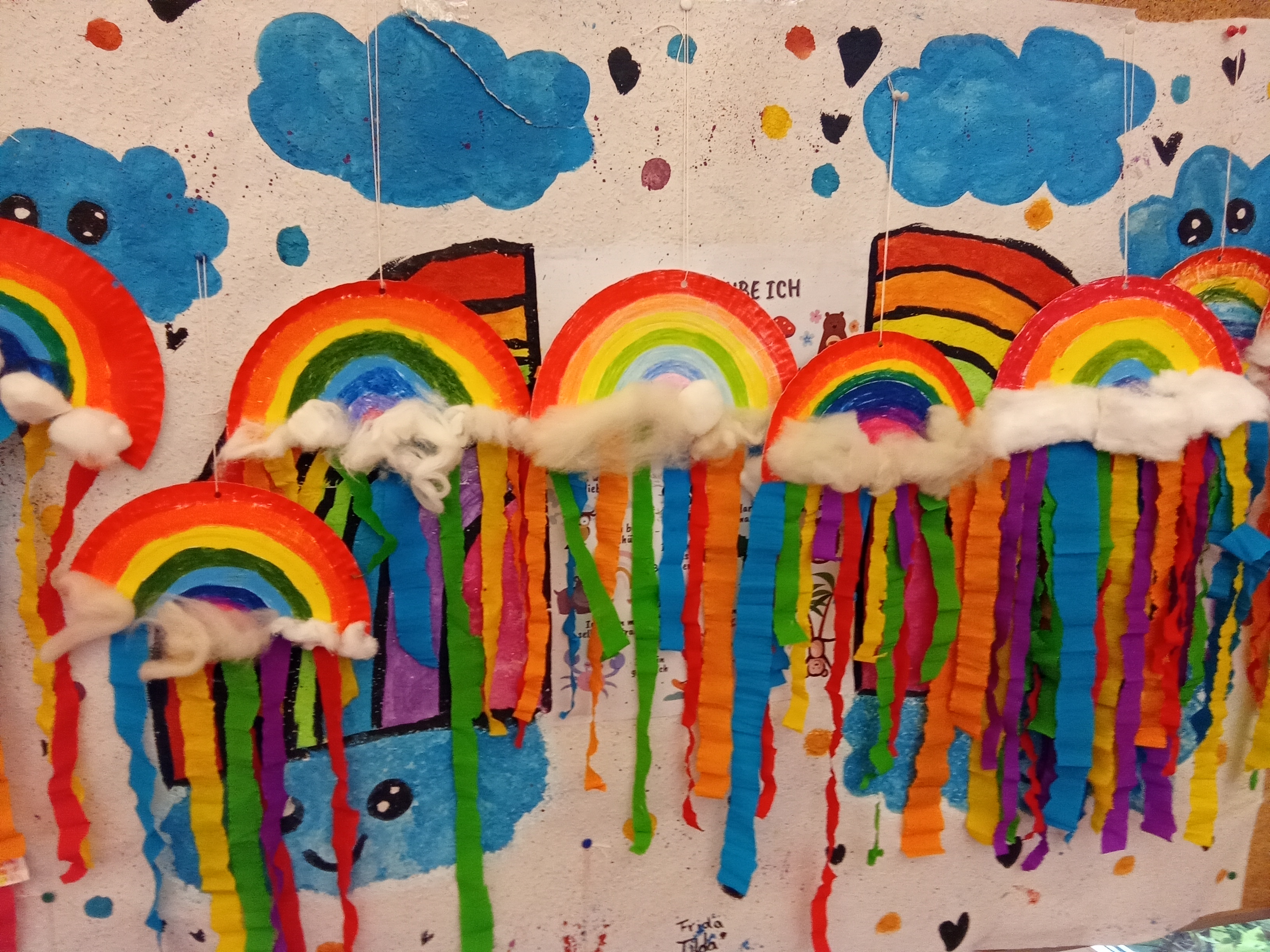 Es wurde fleißig geschnitten, geklebt, gefaltet und gemalt! Die Klassenzimmer wurden frühlingshaft dekoriert 🌸🪻🌹
